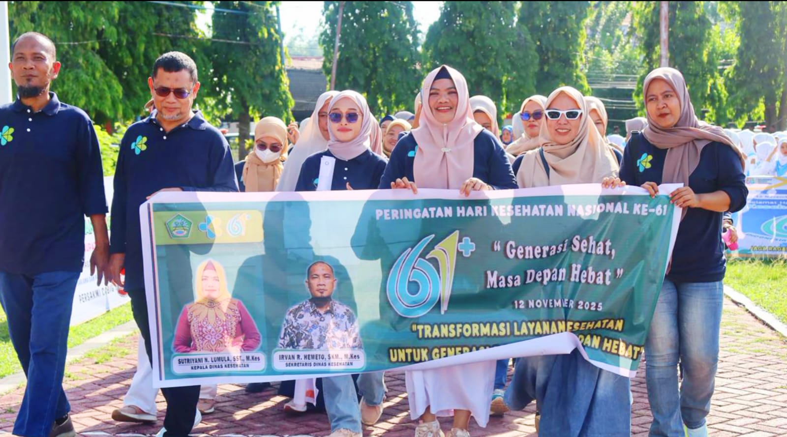 Poota.id, Boalemo — Dinas Kesehatan Kabupaten Boalemo resmi mencanangkan peringatan Hari Kesehatan Nasional (HKN) ke-61 Tahun 2025, Kamis (6/11/2025), yang digelar meriah di Alun-Alun Tilamuta.