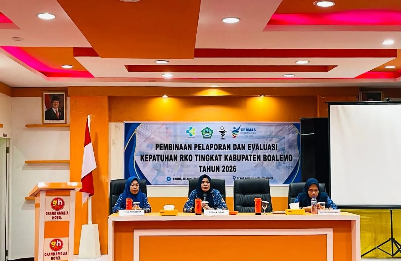 Poota.id, Boalemo – Dinas Kesehatan Kabupaten Boalemo menyelenggarakan Pembinaan Pelaporan dan Evaluasi Kepatuhan RKO (Rencana Kebutuhan Obat) pada Senin (20/4/2026), di Gedung Grand Amalia Hotel Tilamuta.