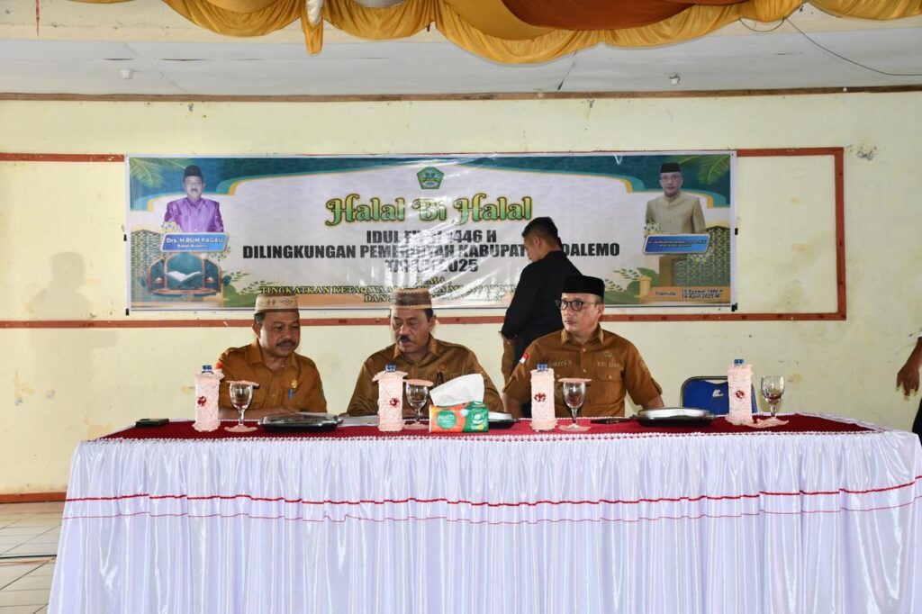 Boalemo, 14 April 2025 – Suasana hangat dan penuh kekeluargaan mewarnai kegiatan Halal Bi Halal Pemerintah Kabupaten Boalemo dalam rangka memperingati Idulfitri 1446 Hijriah, yang digelar di pendopo Kantor Bupati Boalemo, Senin (14/4/2025).