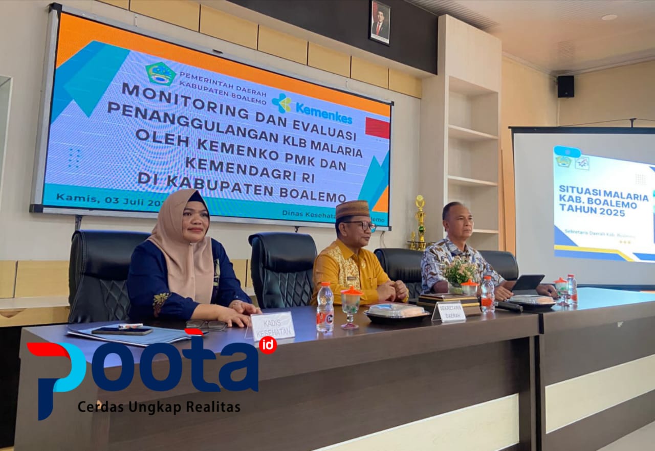 Poota.id, Boalemo — Pemerintah pusat melalui Kementerian Koordinator Bidang Pembangunan Manusia dan Kebudayaan (Kemenko PMK) dan Kementerian Dalam Negeri (Kemendagri) Republik Indonesia, melakukan monitoring dan evaluasi penanggulangan Kejadian Luar Biasa (KLB) Malaria di Kabupaten Boalemo, Kamis (3/7/2025).
