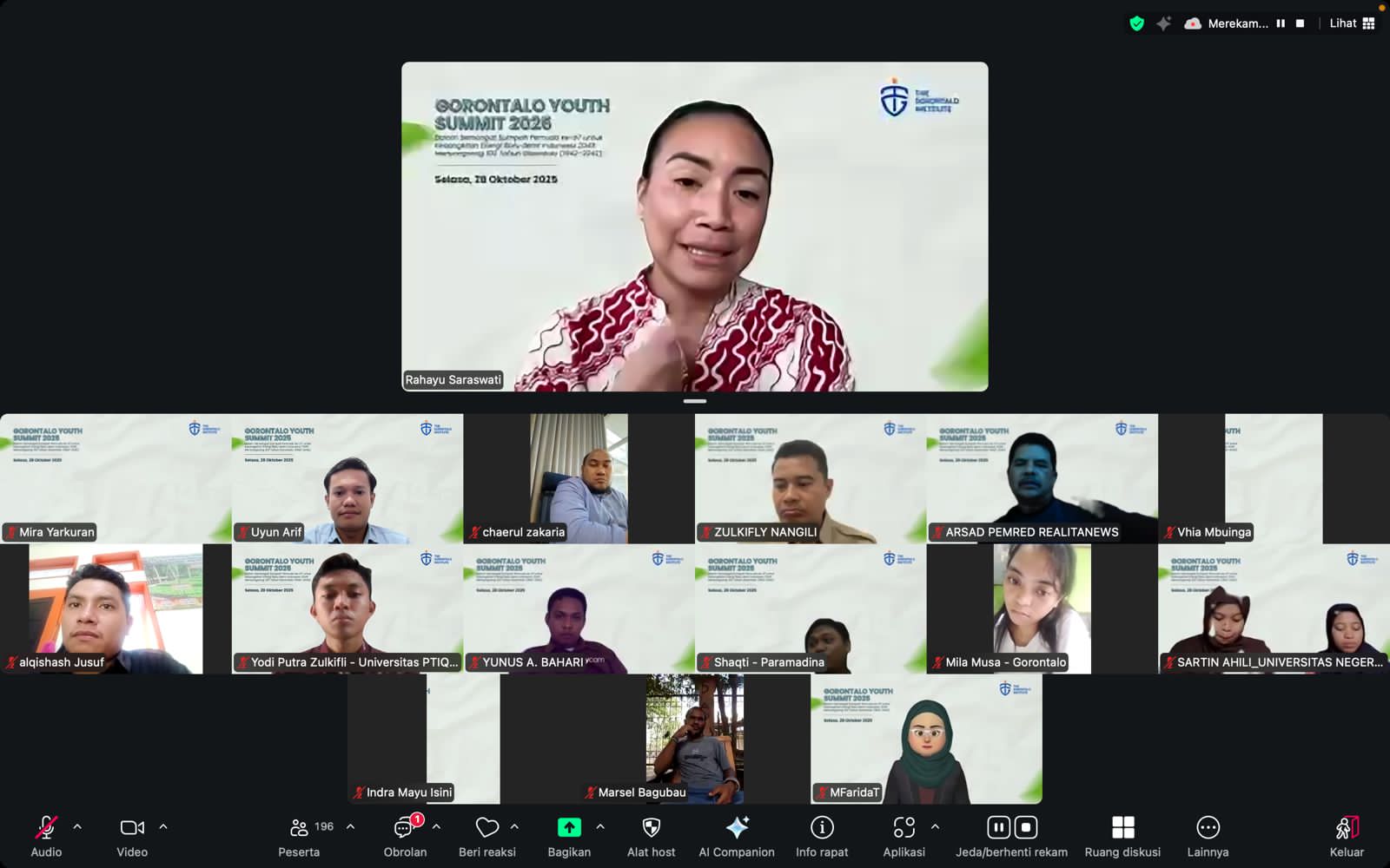 “Kita sedang menuju 100 tahun Gorontalo pada 2042 dan Indonesia Emas 2045. Semangat Sumpah Pemuda harus diterjemahkan dalam kerja nyata — berpikir jauh ke depan, tapi berpijak pada nilai,” ujarnya.