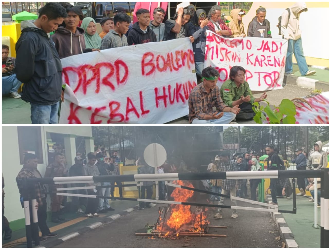 Dalam aksi tersebut, tampak sebuah spanduk besar bertuliskan “DPRD Boalemo Kebal Hukum” sebagai sindiran keras terhadap aparat penegak hukum.