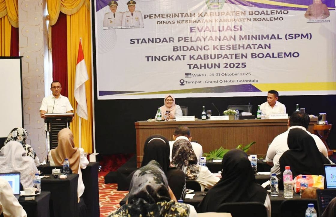 Poota.id, Gorontalo — Pemerintah Kabupaten Boalemo menegaskan komitmennya untuk terus meningkatkan mutu layanan kesehatan dasar bagi seluruh masyarakat. Hal ini ditegaskan Wakil Bupati Boalemo, Lahmudin Hambali, saat membuka kegiatan Evaluasi Standar Pelayanan Minimal (SPM) bidang kesehatan tingkat Kabupaten Boalemo tahun 2025, yang digelar di Grand Q Hotel Gorontalo, Rabu (29/10/2025).