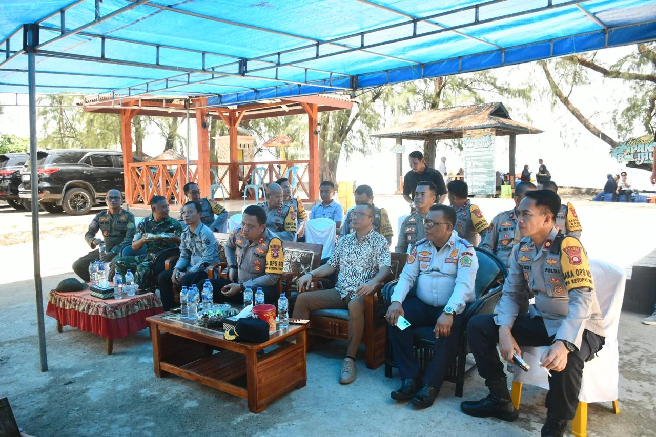 Wakil Bupati Boalemo menghadiri kegiatan Analisis dan Evaluasi (ANEV) Perkembangan Situasi Keamanan dan Ketertiban Masyarakat (Sitkamtibmas) terkini serta Monitoring Pelayanan Perayaan Idul Fitri 1447 Hijriah Tahun 2026 yang dilaksanakan oleh Polres Boalemo di kawasan wisata Pantai Bolihutuo. Selasa, 24 Maret 2026.